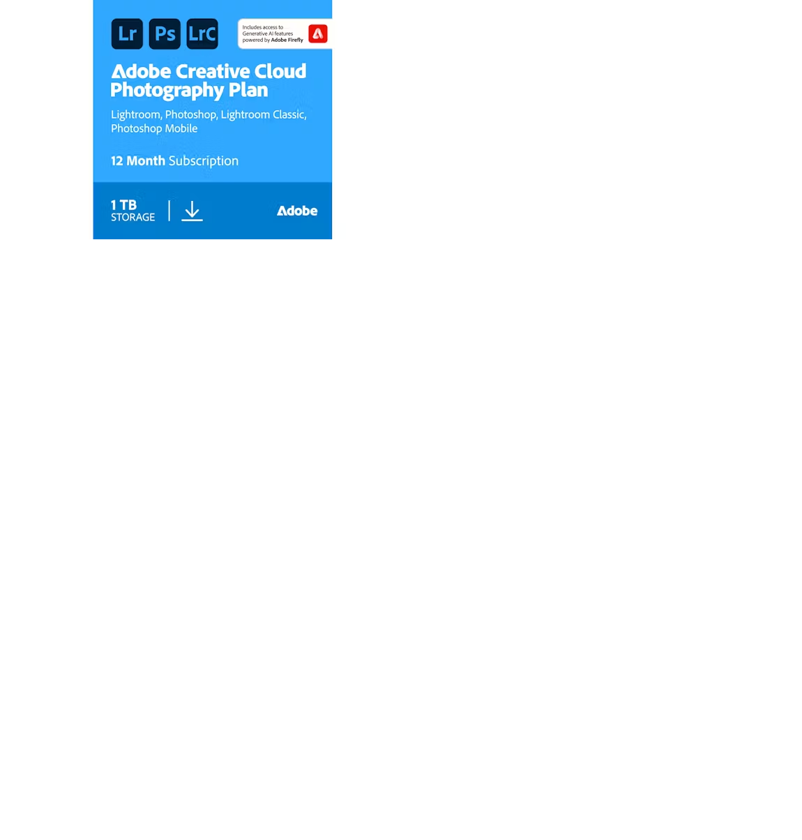 Adobe Creative Cloud Photography Plan (1TB Cloud Storage) Digital Download – 1 Year Subscription