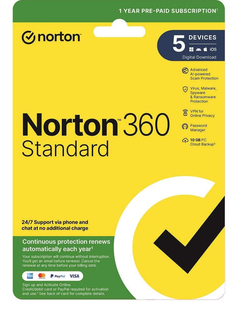 Norton 360 Standard – 1User 5 Devices 1-Year Subscription Digital Download